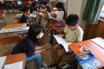 授業では、あまりのあるわり算の式を使って、長いすにみんなが座る方法について考えました。