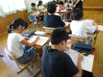夏休みの思い出を聞いたり、アルファベットの読み方・書き方を確認したりしました。4線を使って正しくアルファベットが書けるように繰り返し練習していきたいです。