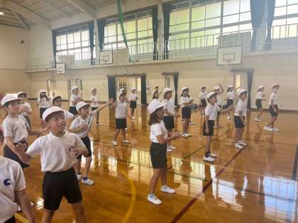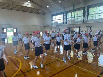 今日は、学年のみんなでダンスの練習をしました。