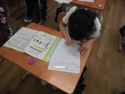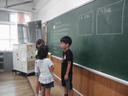 音楽科の学習で、虫や動物の鳴き声をこえであらわしたり、「虫のこえ」を聞いて、どんな虫がどのように鳴くか確認して、どのように歌えばよいか考えたりしました。