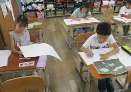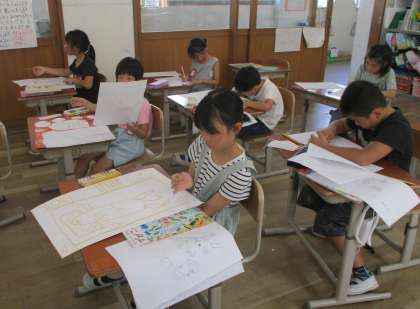 図画工作科の学習で、画用紙にコンテで下書きをしました。