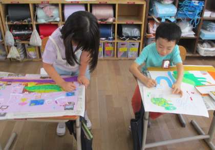 想像を膨らませながら、画用紙に黙々と描いていました。