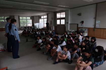 今日は、地域の警察署の方に来ていただき、自転車の乗り方について教えていただきました。