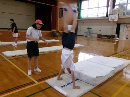自分の課題にあわせて、坂の場や、壁などを利用して、技の習得を目指しています。