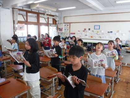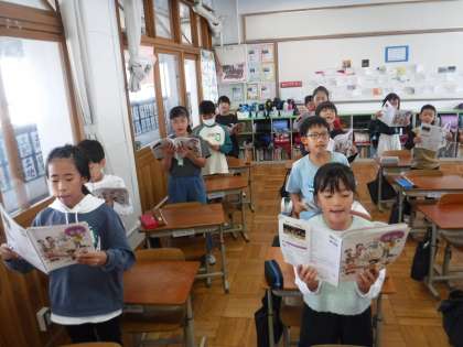 音楽では、「とんび」や「もみじ」を歌っています。とんびが大空を飛び回っている様子や華やかで美しいもみじの情景を思い浮かべながら、とてもきれいな声で歌っています。