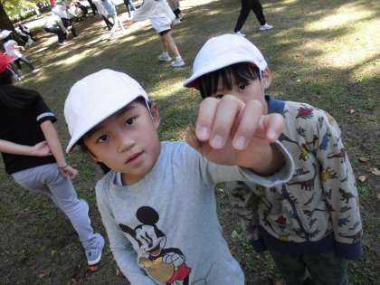 引き続き、秋のものや虫を見つけたり、友達と遊んだりして、とても楽しかったようです。たくさん歩きましたが、そんなことも忘れるくらい、元気に学校に帰りました。