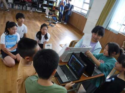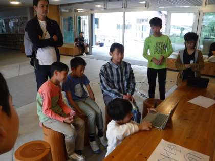 いよいよグループごとに移動です。5年生が準備したブースに行き、校舎のひみつを教えてもらいました。