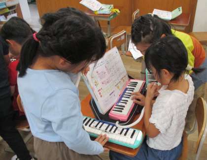 今日は、「山のポルカ」という曲を鍵盤ハーモニカで練習しました。