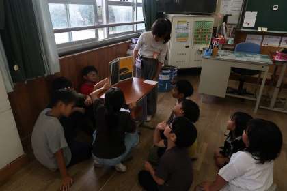 今日は、1年生に読み聞かせをしました。