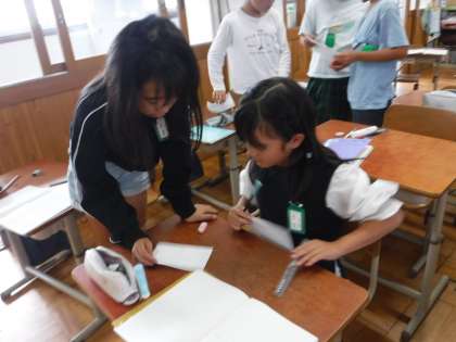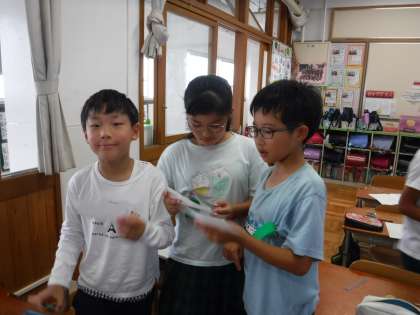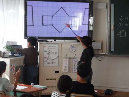 算数科では、面積の学習をしています。今日は、1辺が1センチメートルマスに描かれた図形の面積をマスを数えながら面積を求めました。その後、方眼紙を使って、4平方センチメートルや6平方センチメートルを描きました。