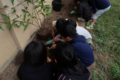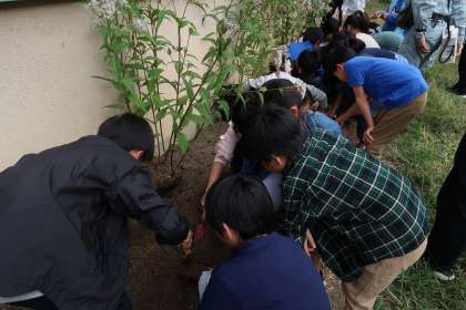 総合的な学習の時間の取組で、フジバカマを植えました。