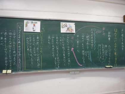 先週行われた自転車教室のことを思い出しながら、道徳科「ほんとうに上手な乗り方とは」の学習をしました。