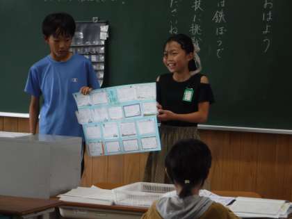 校舎のひみつを教えてくれた5年生に、お礼の手紙を書きました。まだまだ教えて欲しいことがあるようで、そのことも併せて伝え、手紙を渡しました。