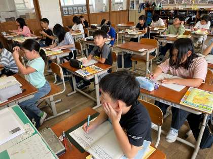 昔は地域にたくさんの田畑があったことを地域に住む方のインタビューから知り、子どもたちもとても驚いていました。