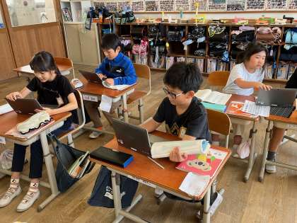 国語科「短歌を楽しもう」の学習の様子です。
