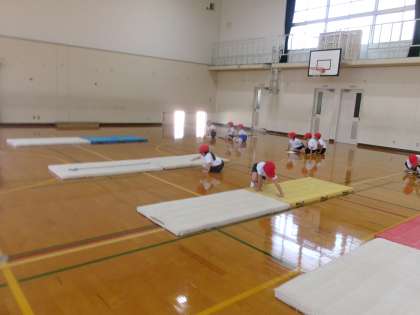 マット遊びでは、新しい技にもチャレンジしています。