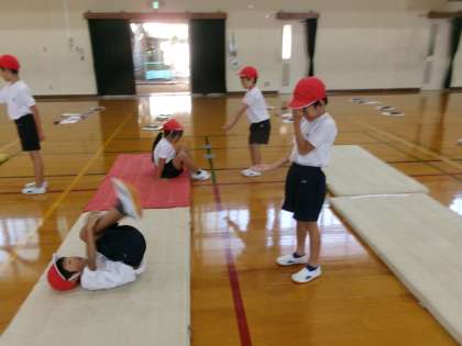 今日は、「だるまころがり」や「うしろころがり」をしました。