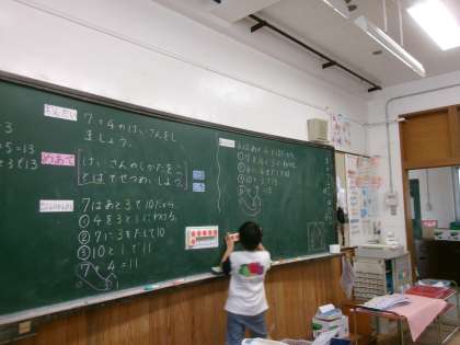 たし算では、くり上がりの学習が始まりました。数図ブロックを動かしながら、説明を頑張ってしていました。