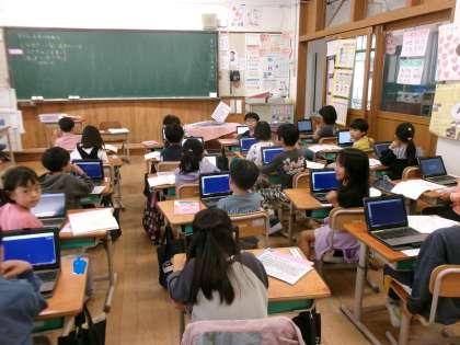 タブレット端末を使うことにも慣れてきました。今日は、国語科の「知らせたいな、見せたいな」の学習をタブレットを使ってしました。うさぎの様子を、ロイロノートのカードに上手に書けました。