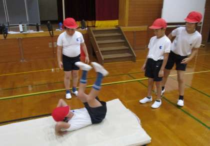 技の練習をするときには、友達と見合って、アドバイスをしていました。