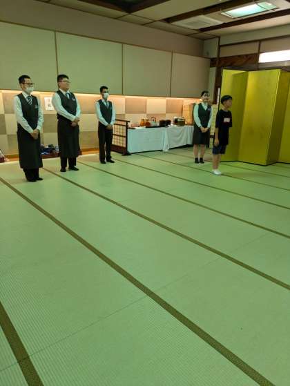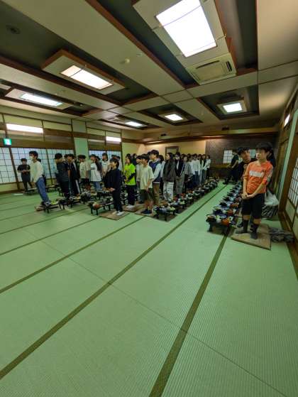 夕食の前に、入館式を行いました。旅館の方々に、代表の児童が、「約束を守って1泊の楽しい思い出を作ります。よろしくお願いします。」と挨拶しました。