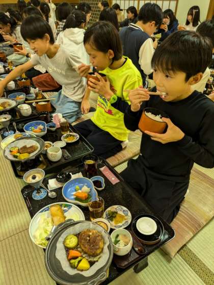 「お刺身おいしい、脂がのってる!」「山賊焼きにかぶりつきたい!」「プリンおいしそう!」などなどおいしい!の声がたくさん聞こえてきました。