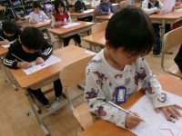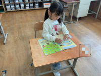 休み時間に、遊び係がみんな遊びを企画してくれました。みんなでだるまさんが転んだをしました。
