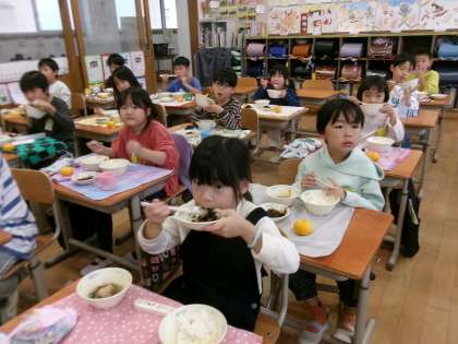 デザートにみかんがついていて喜んでいました。