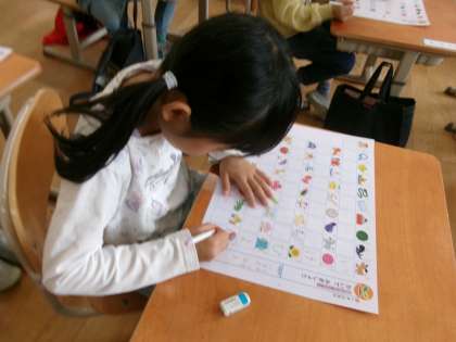 ひらがなのテストをしました。丁寧に取り組み、何度も見直しをしていました。