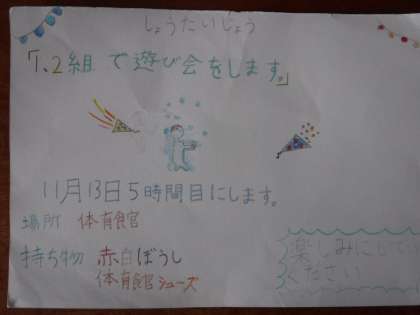国語科「クラスみんなで決めるには」の学習で、1組を遊びに誘う話し合いを進め、計画を立ててきました。そこで今日、1組に招待状を渡しに行きました。1組のみんなが楽しんでくれたらいいなあと思います。