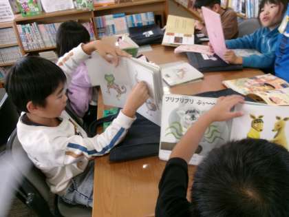 図書室へ本の貸し借りにいきました。読んだ本が100冊を超えてきた人も増えてきました。
