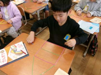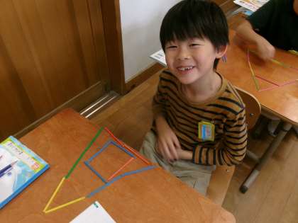 今日は、棒を使って色々な形を作りました。