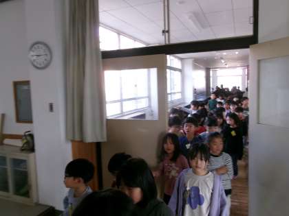 初めての体育館への避難経路でしたが、静かに素早く移動していました。