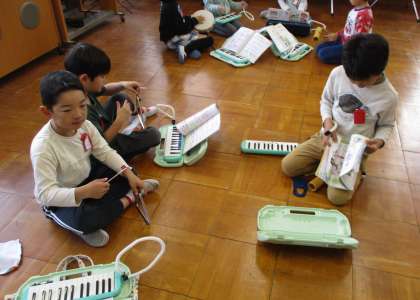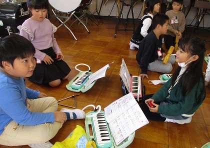 どの楽器が曲の感じに合うのか試しながら、演奏していました。