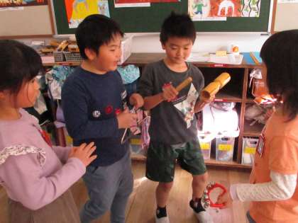音楽科の学習で、鍵盤の演奏に合わせて、楽器を演奏しました。