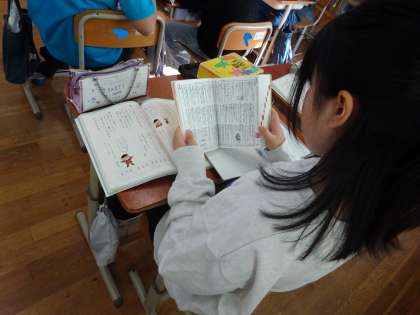 同じ読み方で別の漢字が使われている暗号文を解きました。分からない漢字は国語辞典で調べ、正しい漢字の使い方を覚えることができました。次は問題作りにチャレンジします。