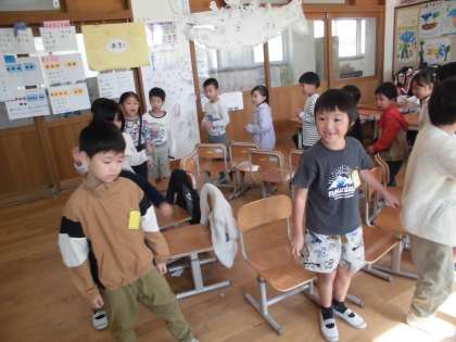 体育科参観でおどった「ポポポポーズ」の音楽に合わせて椅子取りゲームをして、大盛り上がりでした。
