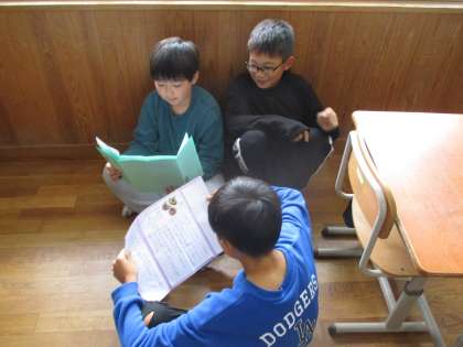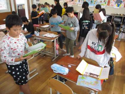 できあがったリーフレットを早速読み合いました。柄や色彩の美しさや使いやすさなど、それぞれの魅力を読んで、「実際に触ってみたいな。」「切子ガラスは、家にあったな。じっくり家で見てみよう。」など、感想をもったようでした。