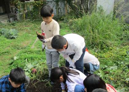 生活科の学習で、畑のさつまいもを掘りました。