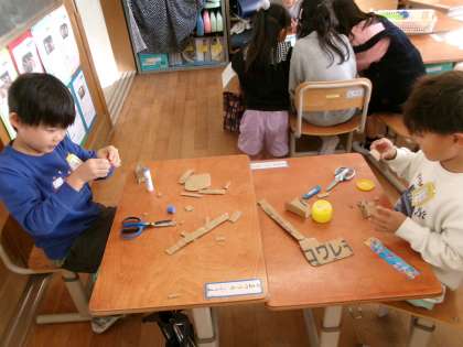 お誕生日係さんは、11月のお誕生日の人をお祝いするために、一生懸命工作をしていました。