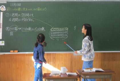 算数科の学習で、7の段のかけ算の問題をしました。