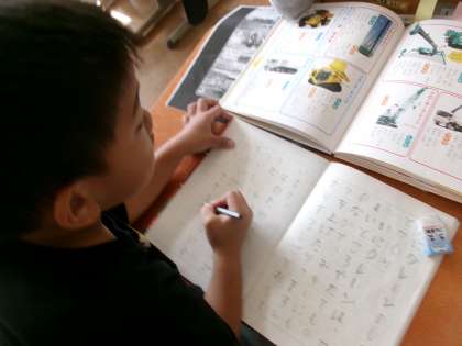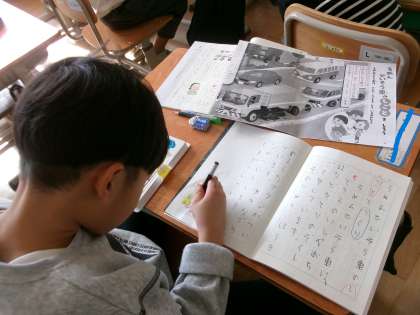 今日は、本を見ながらノートに練習をしました。「しごと」と「つくり」を一生懸命探していました。