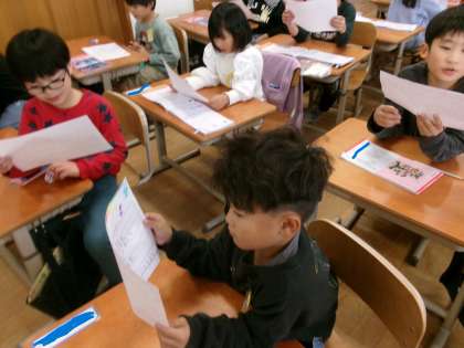 2年生が、「おもちゃランド」を開催するので招待状を持って来てくれました。