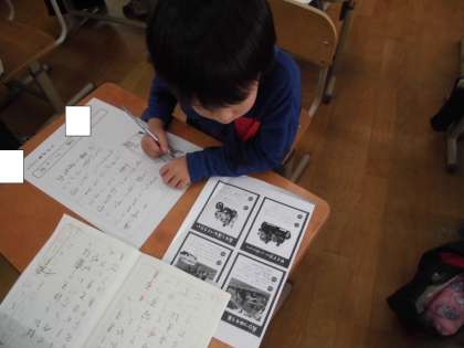 本を読みながら、自分で選んだ自動車の「しごと」と「つくり」について、順序良くまとめることができました。書き終えたら、絵をていねいにかいていました。