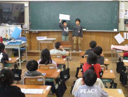 来週のあかしや学習発表会で、1年生に遊びに来てもらうために、招待状を渡しに行きました。