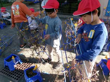支柱からつるを外すのに苦戦していましたが、頑張って丸い形をつくっていました。