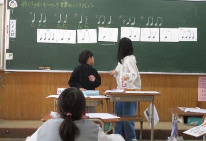 音楽科の学習で、太鼓のリズムを自分たちで作って、演奏してみました。