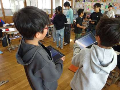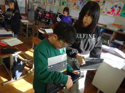 自分の考えを出した後は、構成を考えるためにタブレットを使って整理していきました。困ったことやどうしようか迷ったときはペアで話し合えるようにしました。自分の考えを整理できたので、次は意見文を書いていきます。