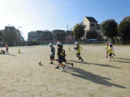 一生懸命ボールを蹴ったり、追いかけたりしていました。