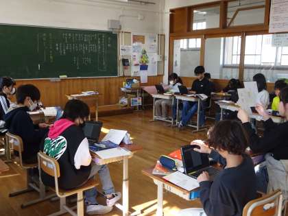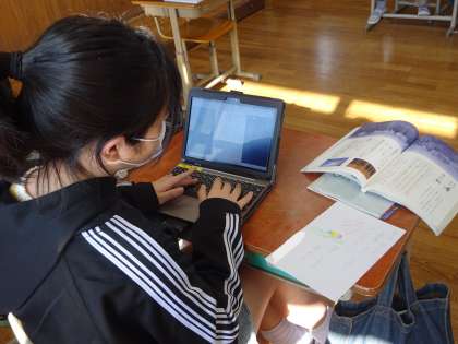 自分の感じる冬らしさをタブレットに打ち込みました。冬から連想される言葉をイメージしたり、普段自分がどんなことを感じたりするかなど、それぞれがイメージする冬を文章に表しました。